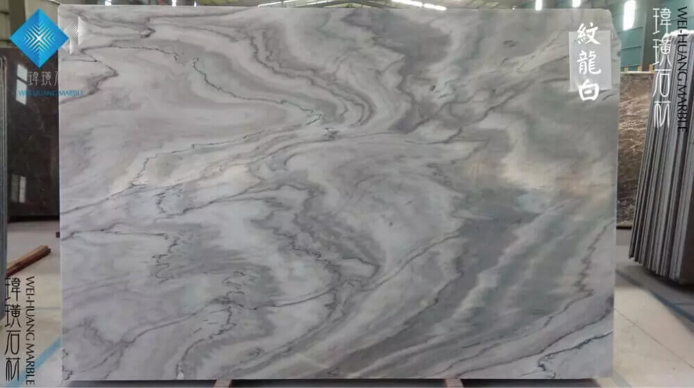紋龍白天然大理石氣勢旺盛磁場非凡,花紋圖騰的布局非常適合大理石電視牆使用!雖然名字叫做紋龍白(白底灰線條的花紋像是一隻龍在天空飛舞),但是更像一隻張開翅膀飛翔的老鷹!鷹嘴在左前方,飛翔的翅膀在上下兩方,不曉得充滿想像力的您看出來了沒?風水師父說此塊大理石紋理像「金龍飛騰」又像「大鵬展翅」,龍和鷹都是吉祥寶物,對在此居住人的磁場可協助正面提升並且帶來好財運!風水寶石稀少難遇合緣者得,想找大理石電視牆的高雄好朋友,趕緊打電話預約來瞧一瞧囉!