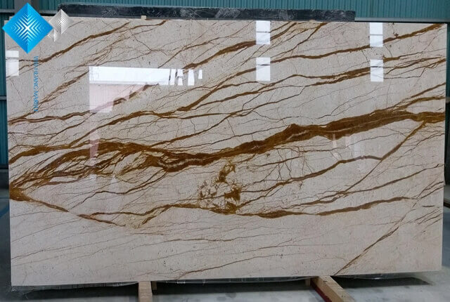 高雄瑋璜大理石推薦 索菲特金 -光澤度高,釉面感強,淺米白的底色加上亂紋密布的樹枝般紋理非常出色顯眼,適用大理石電視牆,端景牆,餐桌,檯面,中島等各設計使用,高雄電視牆專家瑋璜大理石極力推薦! 原石產地:土耳其 表面處理:亮面 大板規格/紋路以現場實際庫存為主